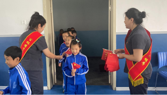 船营法院立案庭联合党支部还向回族小学的同学们赠送了法律书籍、笔记本、带有 “学习很苦,坚持很酷!”励志寄语的摆台,激励同学们努力学习,以梦为马,不负韶华。活动现场,随着歌曲《把未来点亮》前奏响起,同学们在嘹亮的歌声中,随着节拍挥动着手中的红旗,把现场气氛推向高潮。