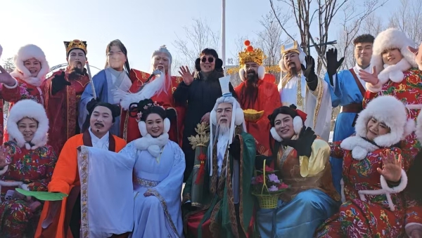 1月3日,拉法山雪俗村内蛟河市艺术团的精彩文艺演出与吉林市戏曲剧团带来的八仙巡游沉浸式表演轮番登场,东北民俗特色与中华传统文化底蕴在此交融碰撞。13时30分,八仙巡游沉浸式表演在水谷公园温情启幕,活动现场人头攒动、热闹非凡。“财神爷”唱响《恭喜发财》,并向观众抛撒元宝造型巧克力,将满满的新春祝福传递给在场每一个人;“铁拐李”“汉钟离”“吕洞宾”等“八仙”依次表演节目,沉浸式的互动体验让现场洋溢着欢乐祥和的氛围,市民游客感受到了浓浓的年味与文化暖意。