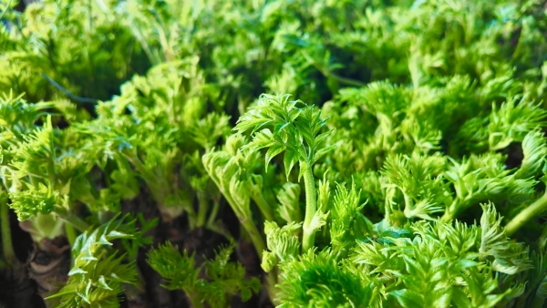 眼下虽已立春,室外寒意未消,记者走进山灵山野菜专业合作社种植大棚内看到,棚内暖意融融、生机勃勃。刺嫩芽、大叶芹、猴腿菜等特色山野菜长势鲜嫩,翠绿喜人。工人们分工协作,有序完成山野菜的采收、修剪、分拣、包装等工作,精准采摘鲜嫩菜芽,按品质标准进行分级筛选,统一捆扎、真空保鲜、装箱码放,各道工序规范高效。一箱箱新鲜山野菜整装待发,将经由冷链物流发往全国各地,把蛟河的山野鲜味送到千家万户。