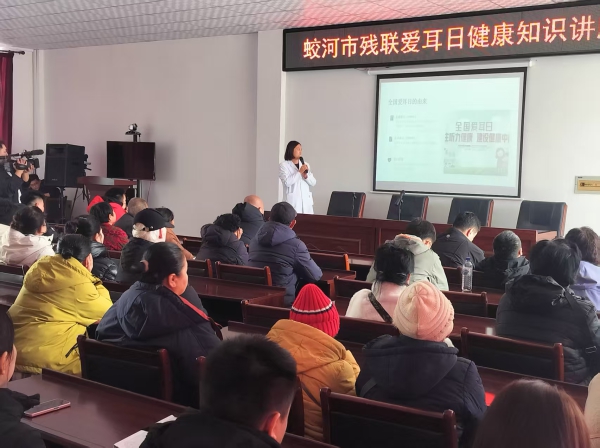 3月2日,蛟河市残联联合市卫生健康局、市中医院举办“爱耳日”健康知识专题讲座,邀请耳鼻喉科专家为乡镇残联工作人员、听力障碍者及家属、老年人、青少年等50余人授课。讲座围绕耳朵结构、听力损伤成因、科学用耳方法等内容展开,重点普及“60-60”用耳原则、耳部保健操、听力“三早”理念等实用知识,并现场解答群众疑问,提升了公众听力健康素养。