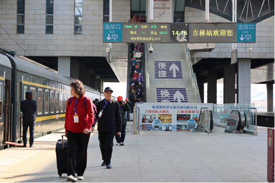 为保障这趟旅游专列安全、有序开行,吉林车务段提前谋划、周密部署。严格按照调令要求,细化运输组织,合理安排作业流程,确保列车运行安全顺畅。在吉林站开辟专列旅客专用候车区,安排专人引导检票、进站,为老年游客提供重点帮扶,让游客出行更便捷。现场干部职工协同配合,加强宣传引导与客流组织,主动协助旅客搬运大件行李,组中保障所有旅客安全、有序登程。