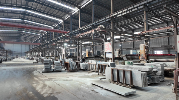 在蛟河市天益石材有限公司厂区内,同样是热火朝天的生产景象,原料区、加工区、成品区划分规整,智能化加工设备高效运作,工人们熟练操作设备,严把产品质量关,企业正抢抓春季市场需求,加快订单生产进度。