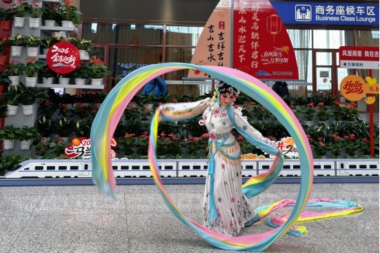 2月23日(大年初七),吉林车务段联合吉林市文旅局和商务局,在候车大厅举办“大东山水迎天下,吉林市欢迎您再来”新春欢送文艺活动。京剧、歌曲、二人转等10余个精品节目轮番上演,现场互动赠送伴手礼,将城市文旅特色与新春祝福送到旅客身边,充分展现“雾凇之都、滑雪天堂”的城市温情,让归途更有温度。