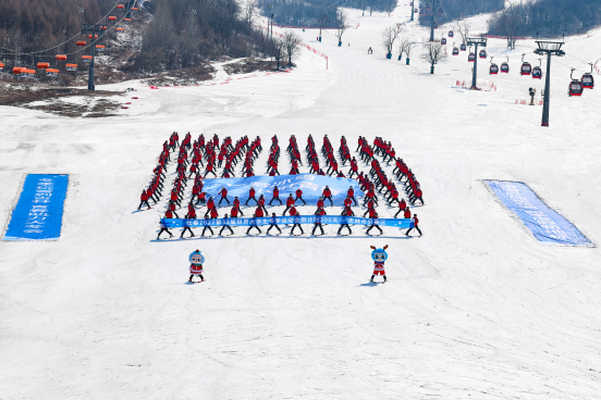 3月21日,长春2027第33届世界大学生冬季运动会倒计时300天主题活动在松花湖度假区正式启动。当天11时30分,两名大学生分别装扮成大冬会吉祥物人偶,脚踩滑雪板在前方领滑,紧随其后的是由300名北华大学学生、VSKI滑雪学院教练以及滑雪爱好者共同组成的方阵。随着指令下达,全体人员沿雪道顺势滑下,场面气势恢宏,十分壮观。