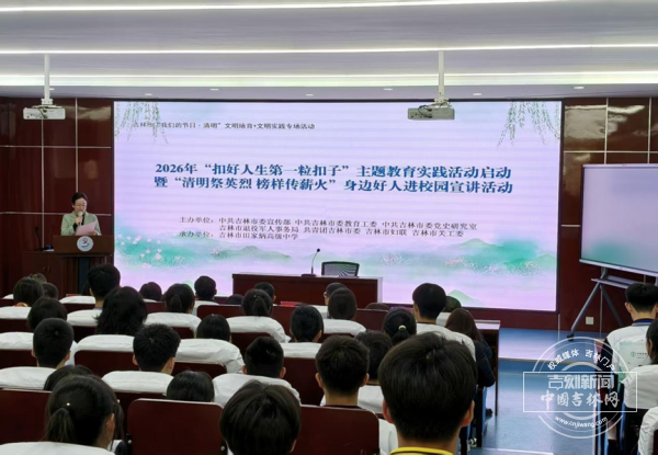 4月1日,2026年“扣好人生第一粒扣子”主题教育实践活动启动暨“清明祭英烈,榜样传薪火”身边好人进校园宣讲活动,在全国文明校园——吉林市田家炳高级中学举行。本次活动由中共吉林市委宣传部、中共吉林市委教育工委、中共吉林市委党史研究室、吉林市退役军人事务局、共青团吉林市委、吉林市妇联、吉林市关工委主办,是吉林市“我们的节日·清明”文明培育 文明实践系列活动之一。身边好人与道德模范及师生代表齐聚一堂,在宣讲与红色故事中,缅怀革命英烈,传递榜样力量。