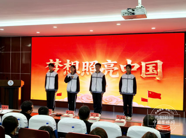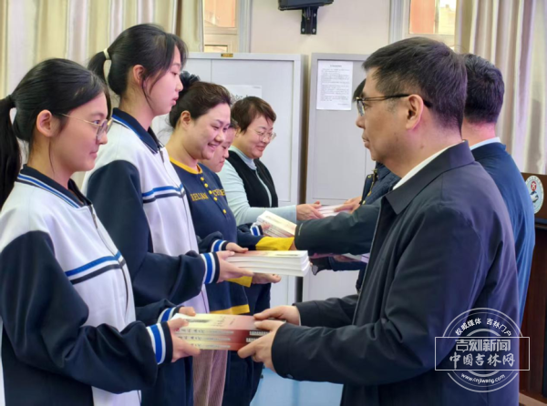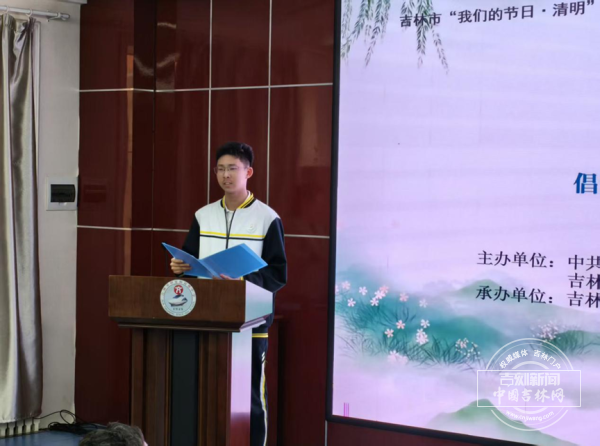 市委党史研究室宣传教育处处长尹是罡现场简要介绍了党史著作《赤旆满山河》,并和主办单位相关领导向师生代表赠书,让红色经典走进校园。吉林市新时代好少年代表张嘉铄同学宣读了《清明祭英烈》倡议书,号召全体青少年铭记英烈事迹,赓续红色血脉,以实际行动致敬革命英雄。
