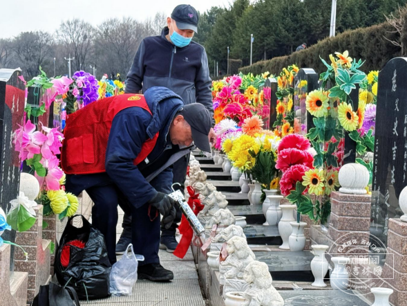 便民服务暖人心,细微之处显温情。江南陵园还设立3个便民服务岗、5个便民服务亭,配备毛巾、小水桶、铁锹等清扫工具,在主路放置大水桶供市民擦碑使用,并增设流动服务岗,身穿“红马甲”的工作人员和志愿者随时为群众解决墓穴维修、打胶等各类问题,为群众提供便利。